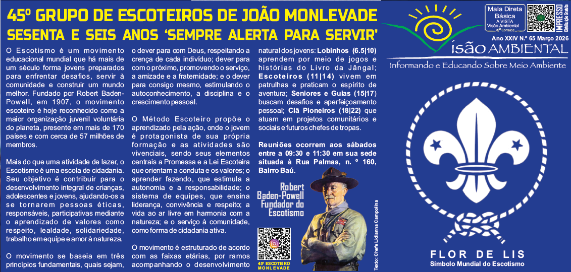45º GRUPO DE ESCOTEIROS DE JOÃO MONLEVADE SESENTA E SEIS ANOS ‘SEMPRE ALERTA PARA SERVIR’