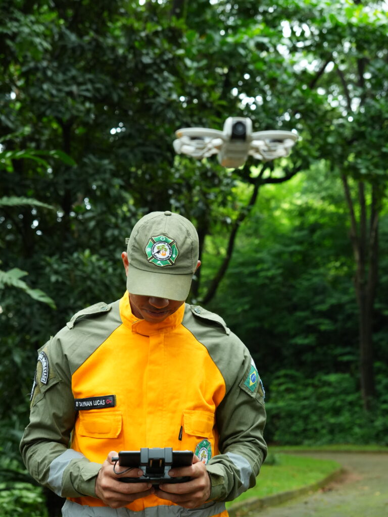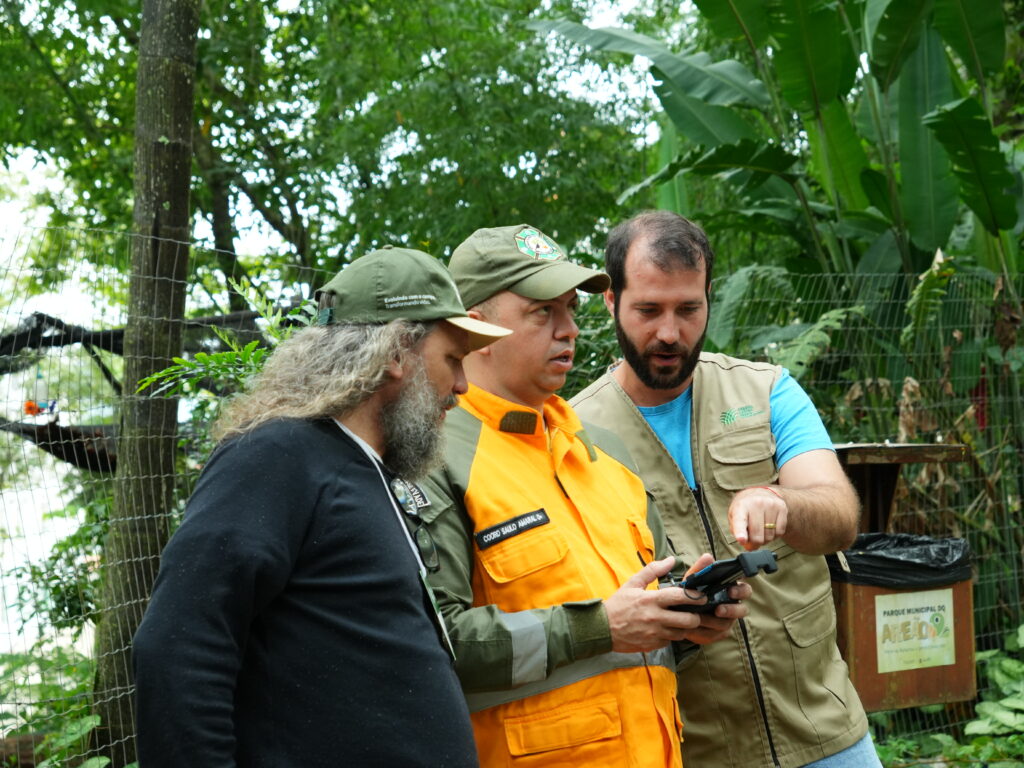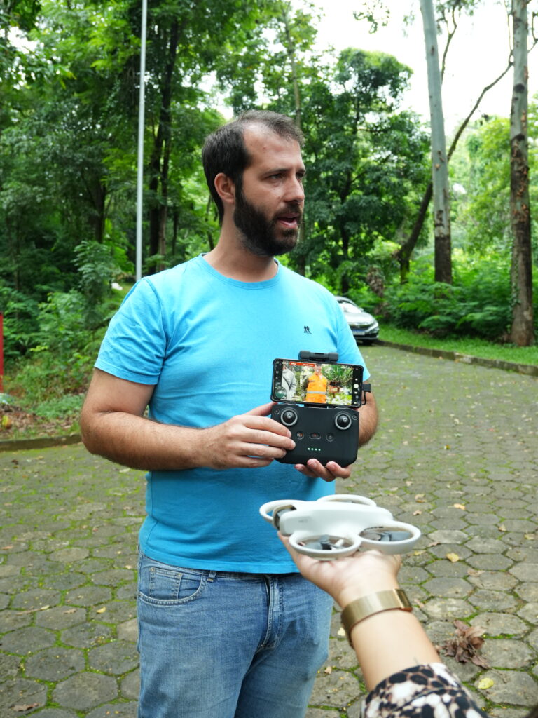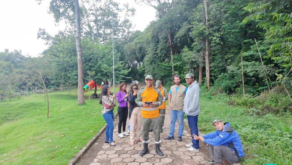 tiveram acesso a temas como: Legislação Aplicada ao Uso de Drones, Planejamento de Voo, Pilotagem Manual e Noções de Mapeamento Básico, fundamentos indispensáveis para quem deseja atuar no setor. O curso contou com a presença de representantes de diferentes áreas, reforçando o caráter multidisciplinar da iniciativa. Participaram Bárbara Moraes Siqueira Chefe de Divisão de Meio Ambiente / Secretaria Municipal de Meio Ambiente, Marina Miranda Alves e André Augusto de Vasconcelos da Vigilância Sanitária / Secretaria Municipal de Saúde, além de Saulo Amaral do Nascimento e Daynan Lucas Pedro da Brigada Florestal. Também estiveram presentes profissionais da imagem, como os fotógrafos e videomakers Letícia Araújo Barbosa ‘Lelet’, Adeliene Vieira, Vitor Hugo Sartori Barbosa e Marcelo Sputnik.